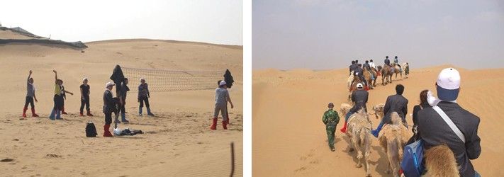 大家懷著激情昂揚的心情下了車,進行了沙漠排球、滑沙、騎駱駝等各種項目
