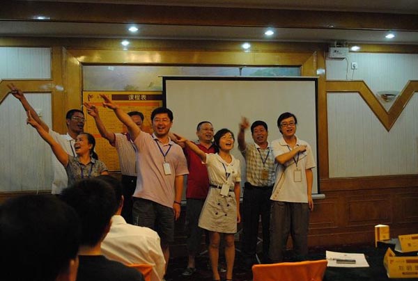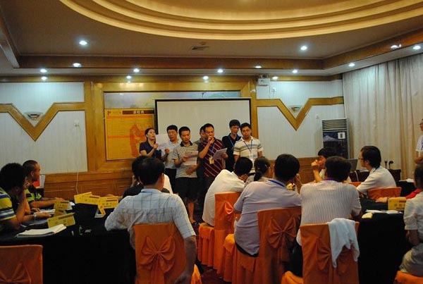 活動為期兩天,由“廈裝”公司中高層管理人員及大界公司講師、輔導員共27人參加,培訓活動在大界公司講師的主持下氣氛異常的熱烈,“廈裝”公司及各控股子公司各級管理人員帶著“團結(jié)互助,開拓進取”的思想而來,對課程要求很快就熟悉起來,并按照培訓的要求進行分組、選隊長、創(chuàng)造隊歌及隊手勢等有趣的活動。