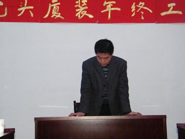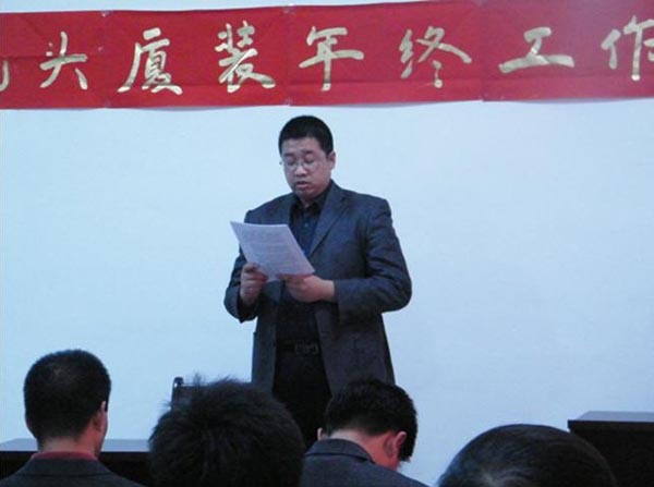 隨著新年鐘聲的臨近,我司于2010年12月31日,下午13:30分在公司三樓會(huì)議室召開了2010年年終工作總結(jié)及優(yōu)秀員工表彰大會(huì)。此次會(huì)議目的既是讓大家對(duì)公司成立以來(lái)的熬人業(yè)績(jī)、明年的整體發(fā)展趨勢(shì)、任務(wù)指標(biāo),以及公司對(duì)每位職工工作的肯定做了一一講解。營(yíng)造全體員工團(tuán)結(jié)凝聚、以廠為家、共同奮進(jìn)的氛圍,回顧過(guò)去我司做出了當(dāng)年建廠、當(dāng)年投產(chǎn)、當(dāng)年銷售的令人矚目成就。通過(guò)此次會(huì)議,公司全體同仁堅(jiān)信在大家共同努力下,我司產(chǎn)品必能遍布內(nèi)蒙古中西部及陜北地區(qū),并且在所有同行當(dāng)中永居鰲頭,成為全內(nèi)蒙、全國(guó)、全世界第一品牌。